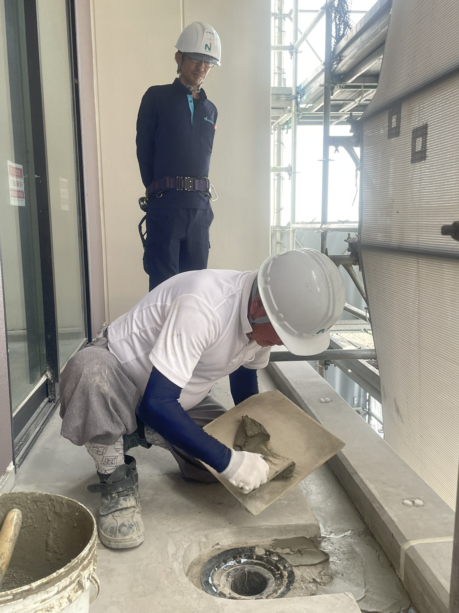 ゼネコンの一次請け左官業者として、左官工事作業やコンクリート作業の職方手配が主な仕事です。