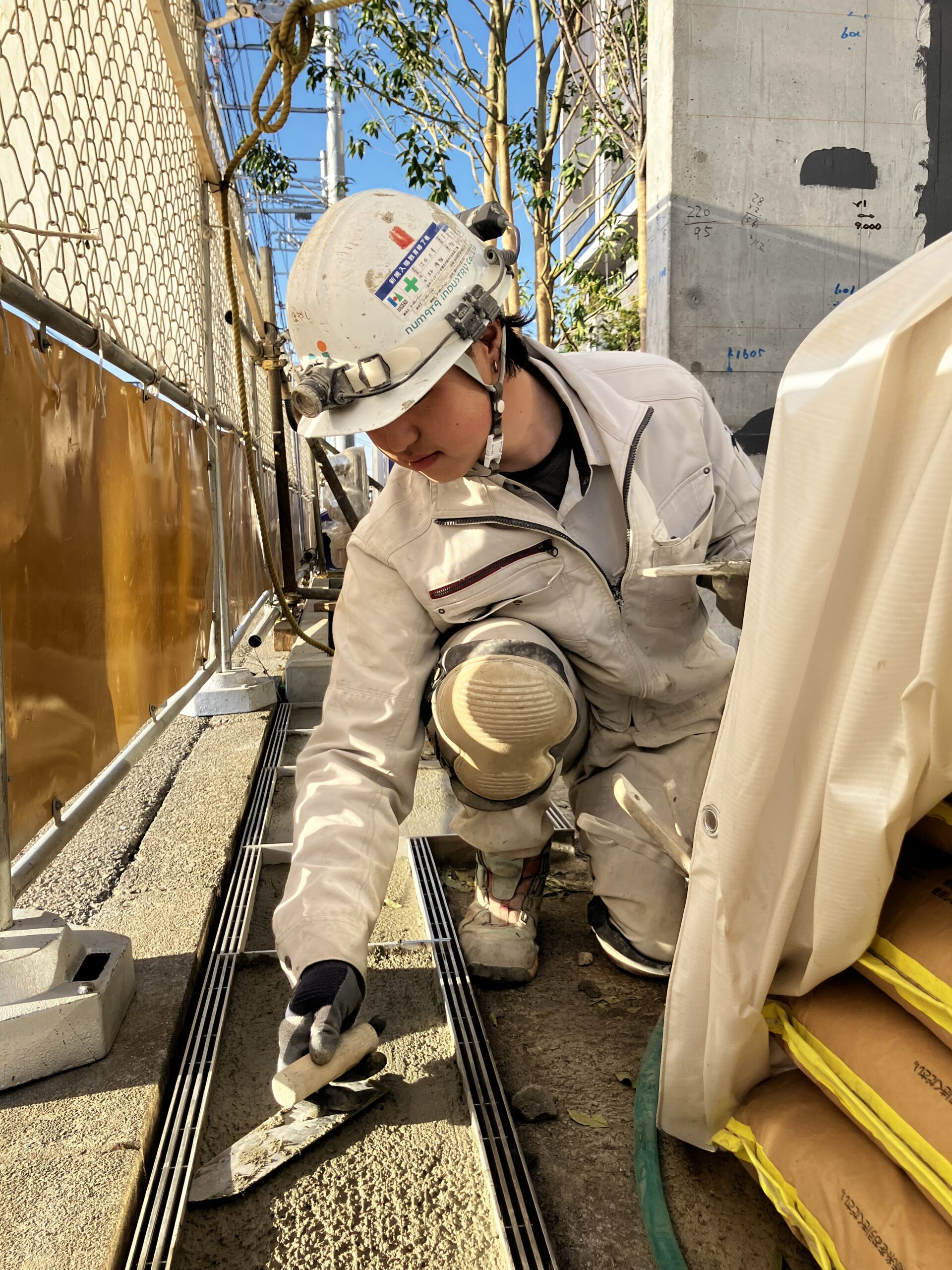 左官職人は、若い人が少ない現場のイメージがありますが、大きな現場には色々な工種の作業員がいるので、休憩時間中は別の会社の若い作業員としゃべったりもできて、楽しいです。