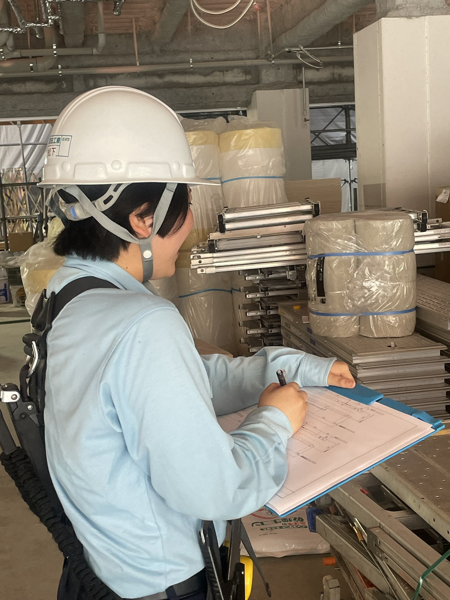 今は、現場監督の補助として、現場の状況を確認したり、必要書類を作成や、施工中の現場の近隣住民への挨拶等、現場で色々なことを勉強していますが、それ以外にも「せっかくだからやってみたら?」とお声がけいただき、会社のPR動画作成の為の撮影に加わったり、制作会社との打合せに出たり等、現場以外での新しいこともどんどん任せていただいて、楽しい職場だと思います。